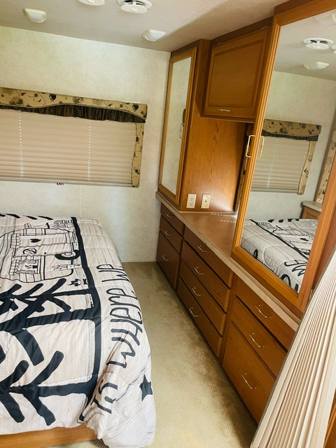 Details - VERY CLEAN SMOKE FREE 2002 Fleetwood Storm motorhome with 29,000 miles. ONLY 25k! 2 ac units works great, rear camera, 2 slides, no leaks, V10 motor, sleeps 6, Onan generator with only 800 hours on it, new tires, roof sealed, hidden tv in bedroom, custom outdoor stereo, led lights underneath and under awning, lots of storage